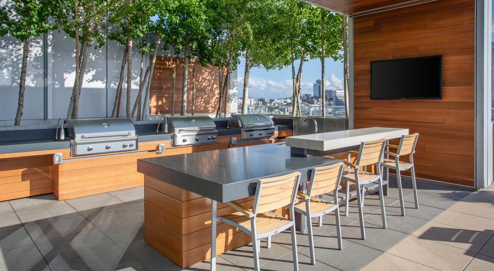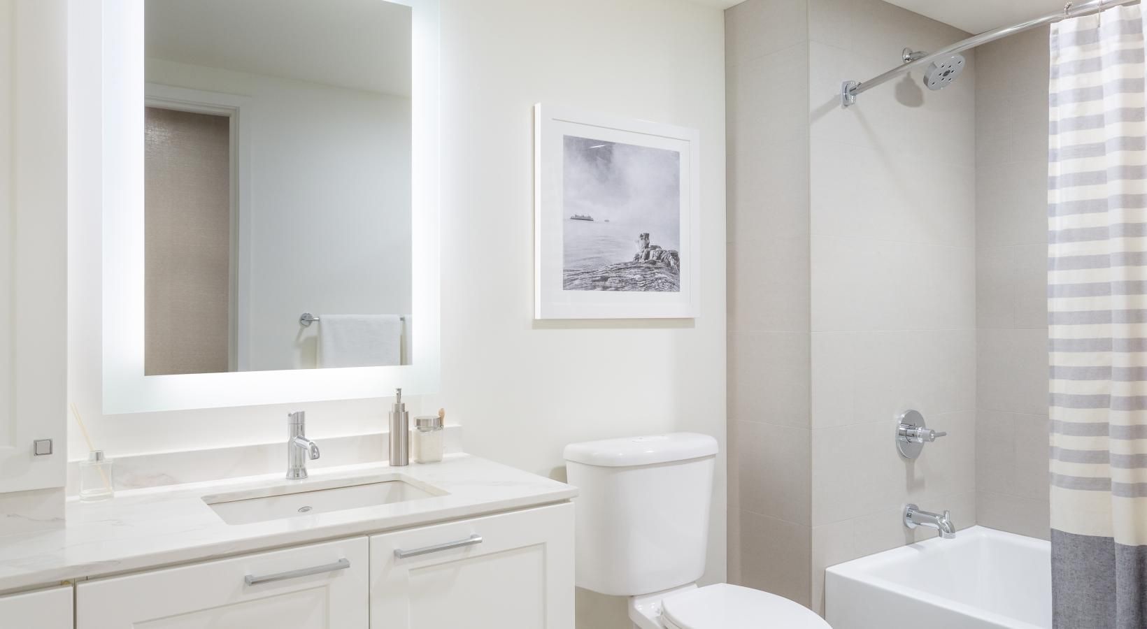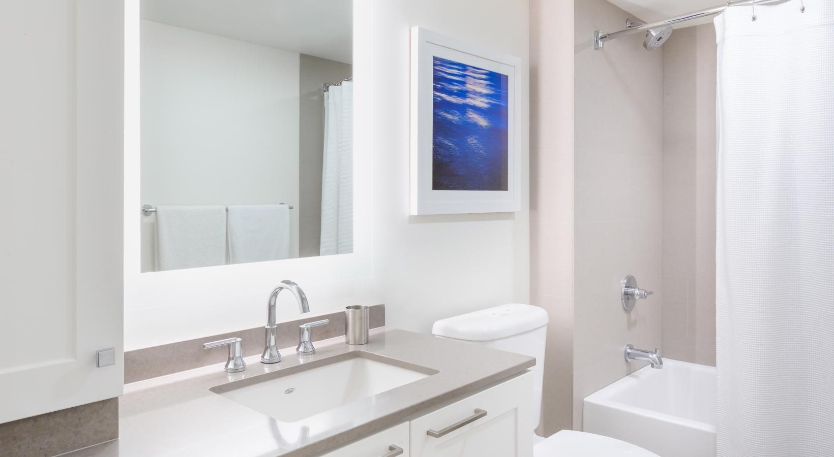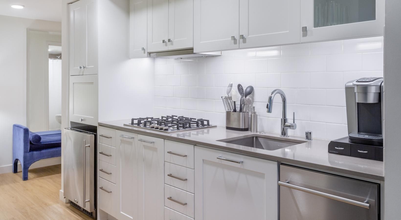 The big picture is this: clean, modern lines, expansive views and light, and finishes that evoke elegance and promise ease and comfort. The fine print is similarly noteworthy — five-burner gas ranges, Blomberg stainless steel appliances, tile backsplashes, marble-inspired countertops, plank hardwood flooring, Nest thermostats with central air, and Brizio fixtures in kitchens and baths. Our spacious Seattle apartments provide every little luxury you need to unwind and stretch out, with built-in closet storage, available walk-in closets, and airy living areas with oversized windows featuring views of SLU, the Space Needle, and the Downtown skyline.
